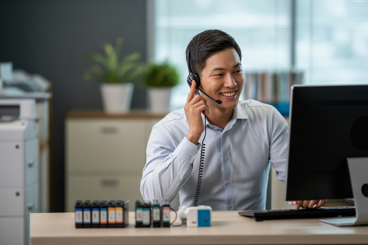 Chúng tôi cung cấp dịch vụ hỗ trợ kỹ thuật toàn diện cho các vấn đề liên quan đến máy in. Khi gặp sự cố như máy in bị kẹt giấy, in mờ, in lệch màu. Khách hàng có thể liên hệ để được hướng dẫn xử lý qua điện thoại hoặc yêu cầu kỹ thuật viên đến trực tiếp.