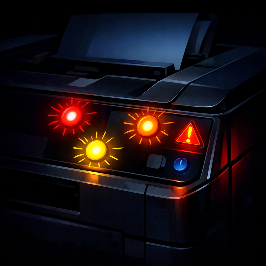 Đèn báo nháy loạn lên như đèn disco là dấu hiệu máy in Epson đang la lớn “tôi có vấn đề đây”.