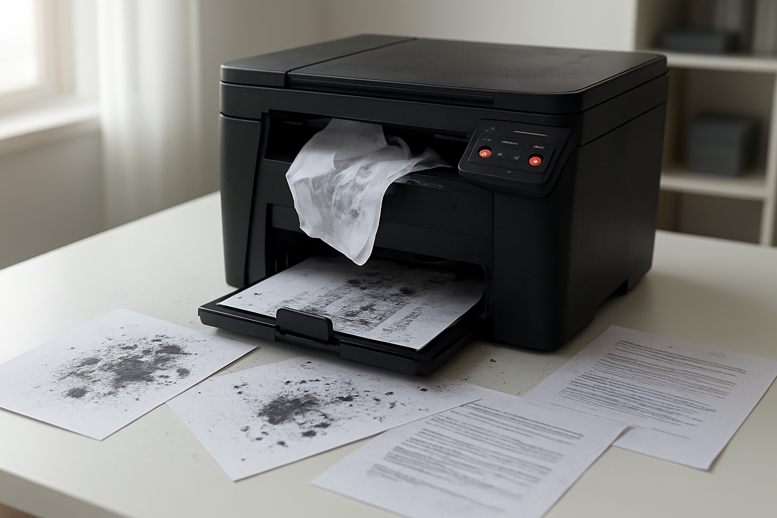 Drum unit, fuser unit và toner cartridge là ba thành phần chính thường gặp sự cố. Drum unit chịu tr책nhiệm tạo hình ảnh trên giấy, khi hỏng sẽ làm xuất hiện những vệt đen hoặc vùng mờ trên trang in. Fuser unit có nhiệm vụ “nướng” toner lên giấy, khi có vấn đề sẽ khiến mực không bám chặt hoặc giấy bị nhăn.